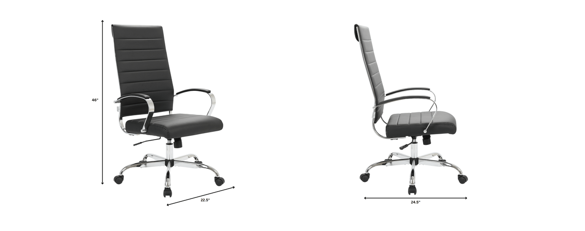 Elevate your office experience with the Benmar High-Back Leather Office Conference Chair. Its adjustable height, swivel, and tilt features provide versatility and comfort. The pneumatic gas lift and 360-degree swivel add functionality, while the mid-century inspired design adds a touch of luxury. Perfect for any professional environment.