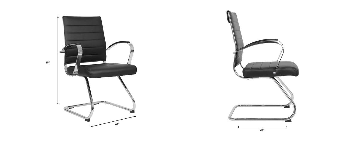 Benmar Mid-Back Office Conference Chair Upholstered in Leather with Stainless Steel Sled Base