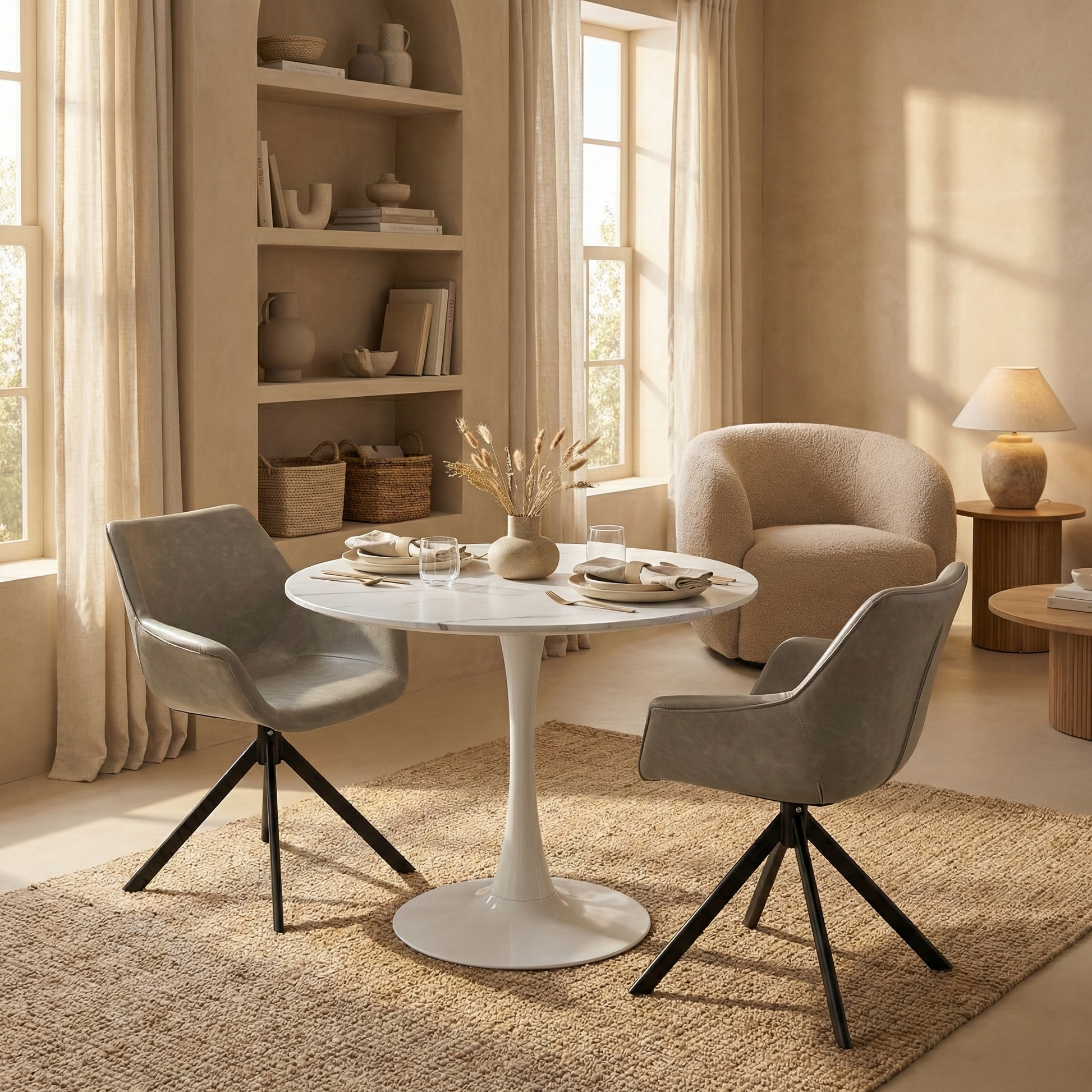 - Minimalist Design: Round tabletop fosters an inclusive dining atmosphere with a sleek, minimalist aesthetic.