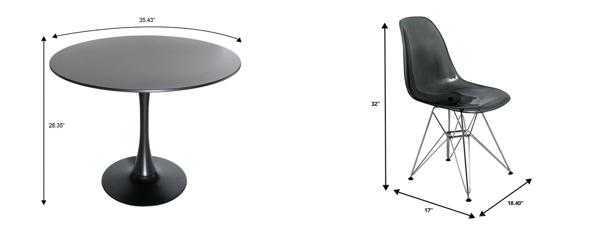 Bristol 5-Piece Dining Set 35" Round Dining Table in Black Iron - 4 ABS Plastic Side Chair in Chrome
