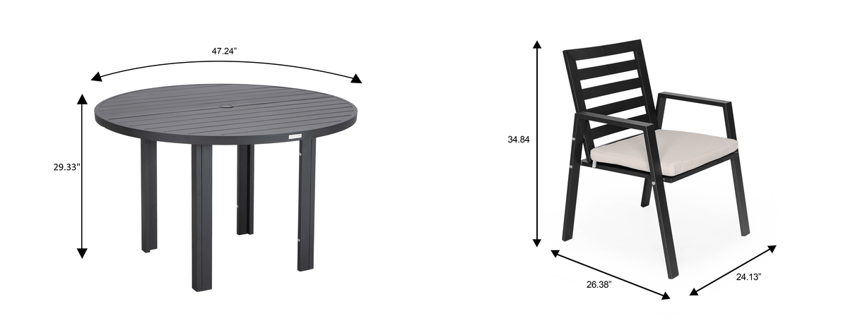 - Overall Width - Side to Side Table: 47.24 in. Chair: 24.13 in.