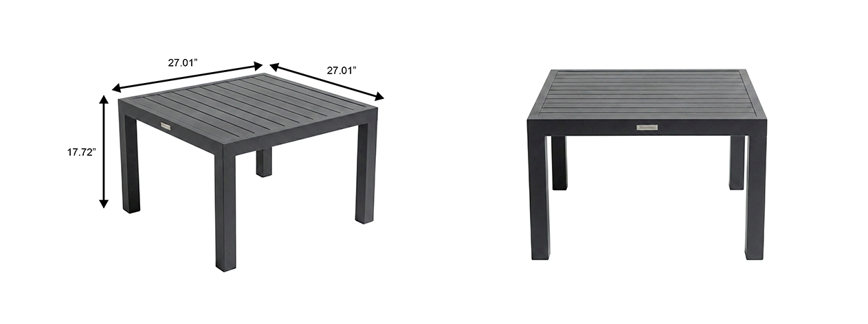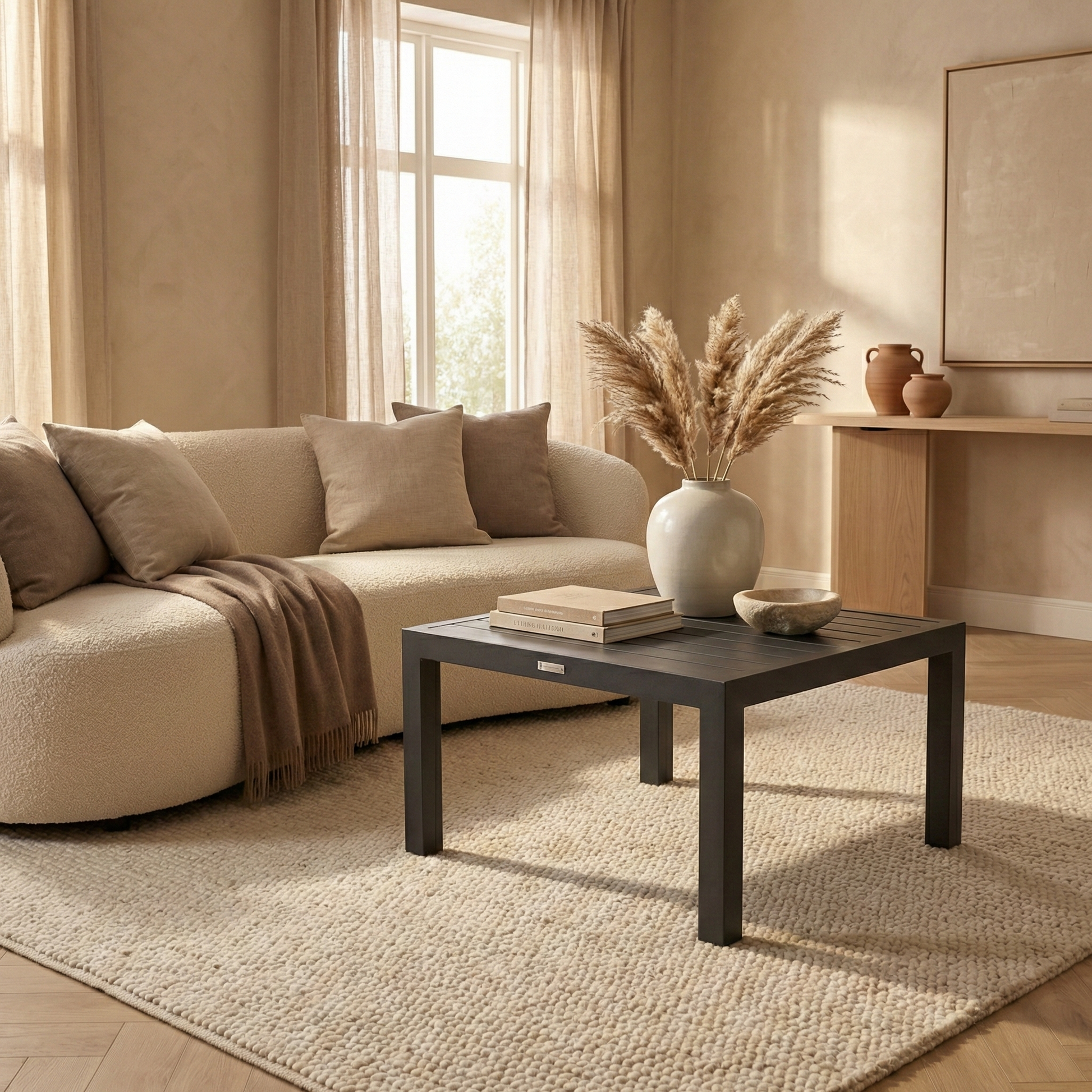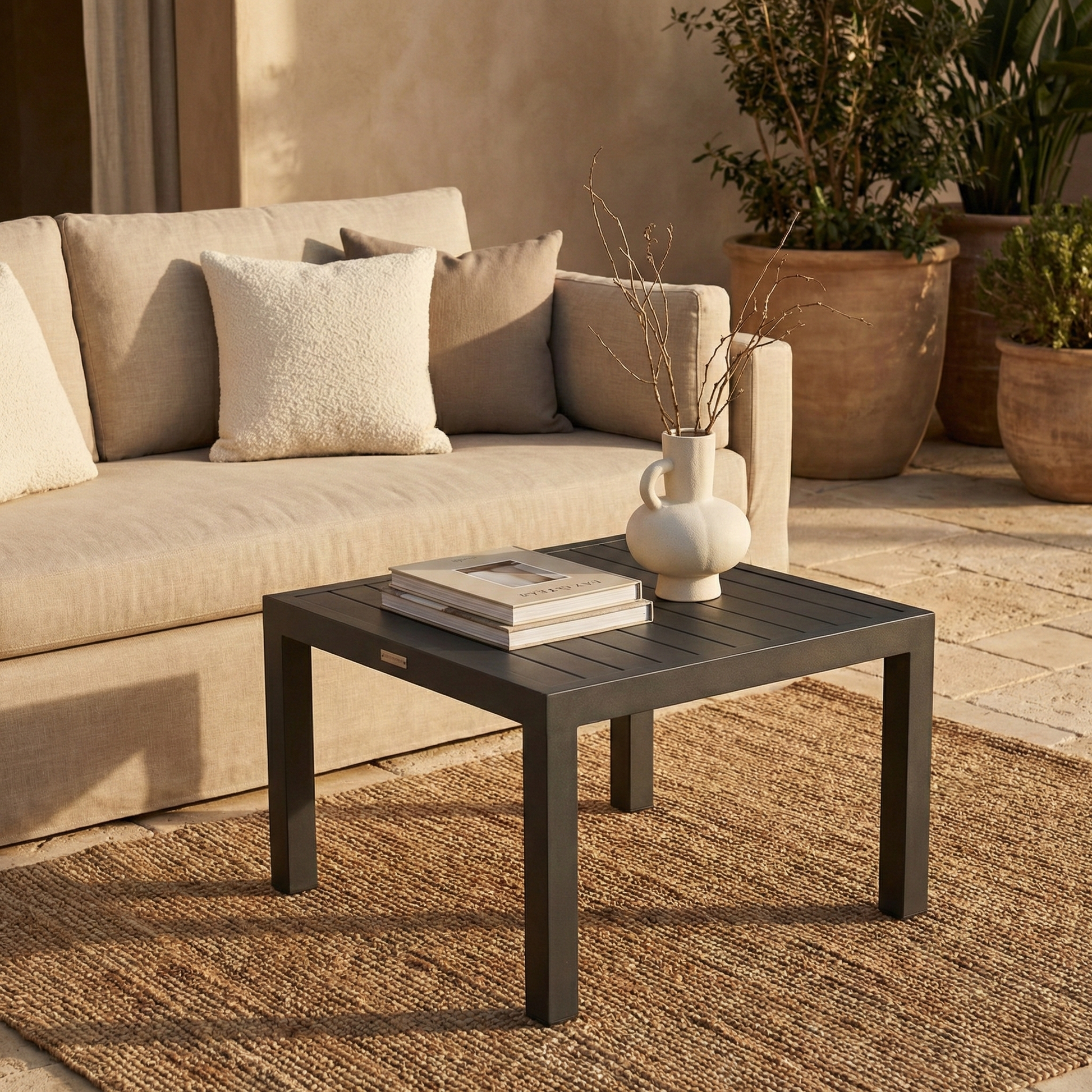 The Chelsea 27" Coffee Table combines contemporary design with practical durability. Its lightweight aluminum frame delivers exceptional strength while remaining easy to position and rearrange. Built to withstand outdoor elements—from intense UV exposure to moisture and temperature fluctuations—this table requires minimal maintenance and resists corrosion and staining. The sleek black finish complements modern and transitional interiors alike. Quick assembly and straightforward care make it an ideal choice for living rooms, patios, and covered outdoor spaces where reliable performance matters.