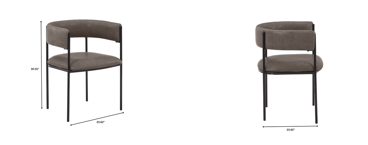 Introducing the Cyril Dining Chair, designed with a modern u-shaped back and open sides for a sleek and contemporary look. The powder-coated iron frame provides stability and durability, while the comfortable padded sponge and velvet/leather material offer a luxurious touch. Perfect for dining, kitchen, or office, with easy assembly and rubber pads for floor protection.