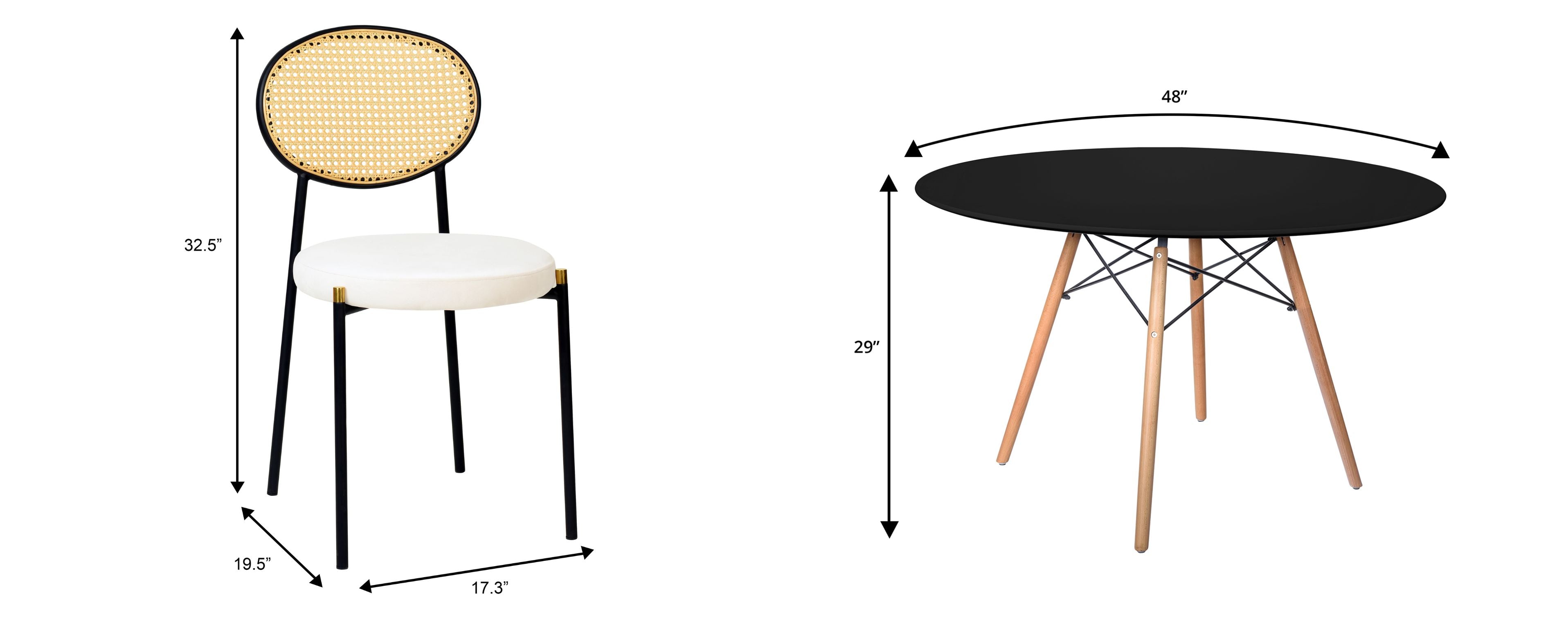 - Overall Width - Side to Side Chair: 17.3" Table: 48"