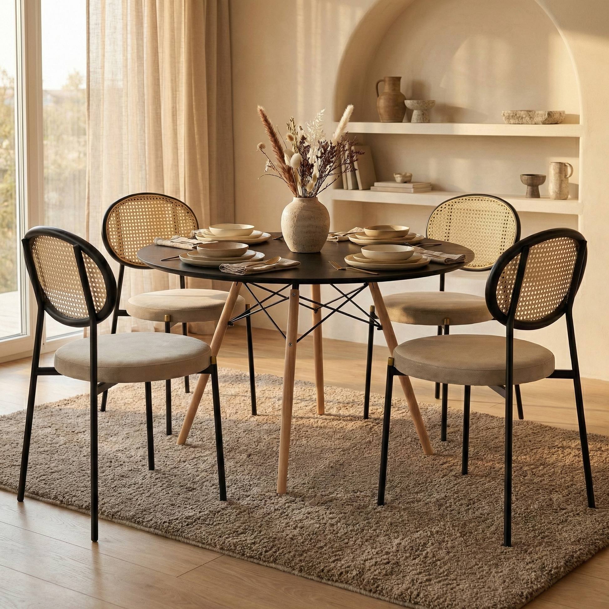 - The round table comfortably seats up to 4 people, providing sufficient space for dining, working, or casual use without feeling crowded.