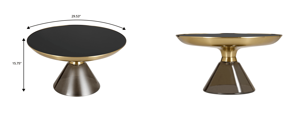 Hyalus 30-Inch Round Glass Coffee Table with Golden Iron Rim Frame and Glass Base