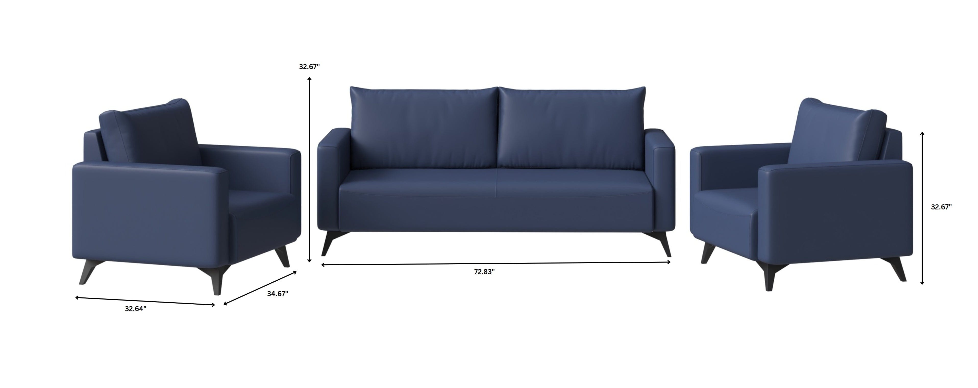 Inno 3-Piece Leather Sofa Set with 2 Single-Seater and a Three-Seater Sofa with Stainless Steel Legs