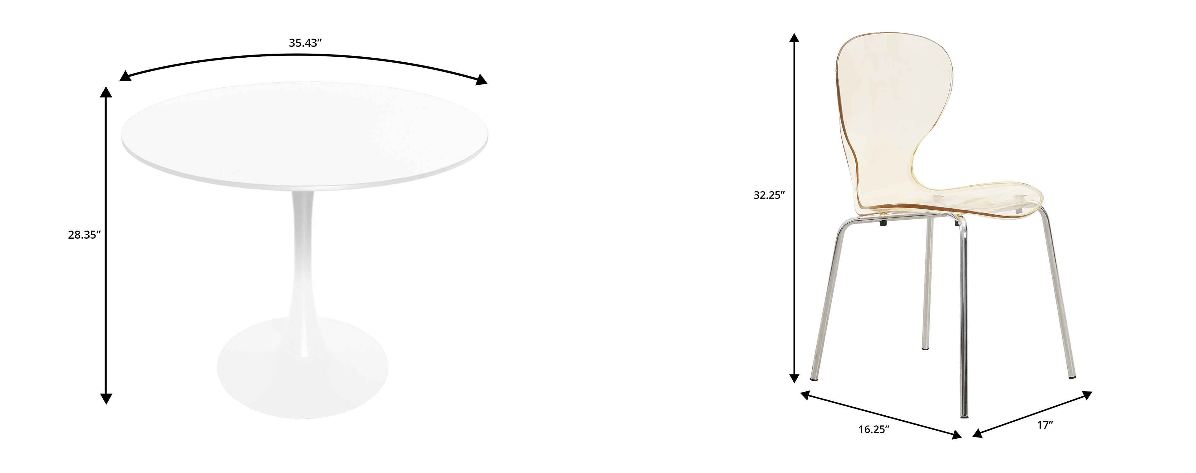 - Overall Width - Side to Side Table: 35.43 in Chair: 17 in.