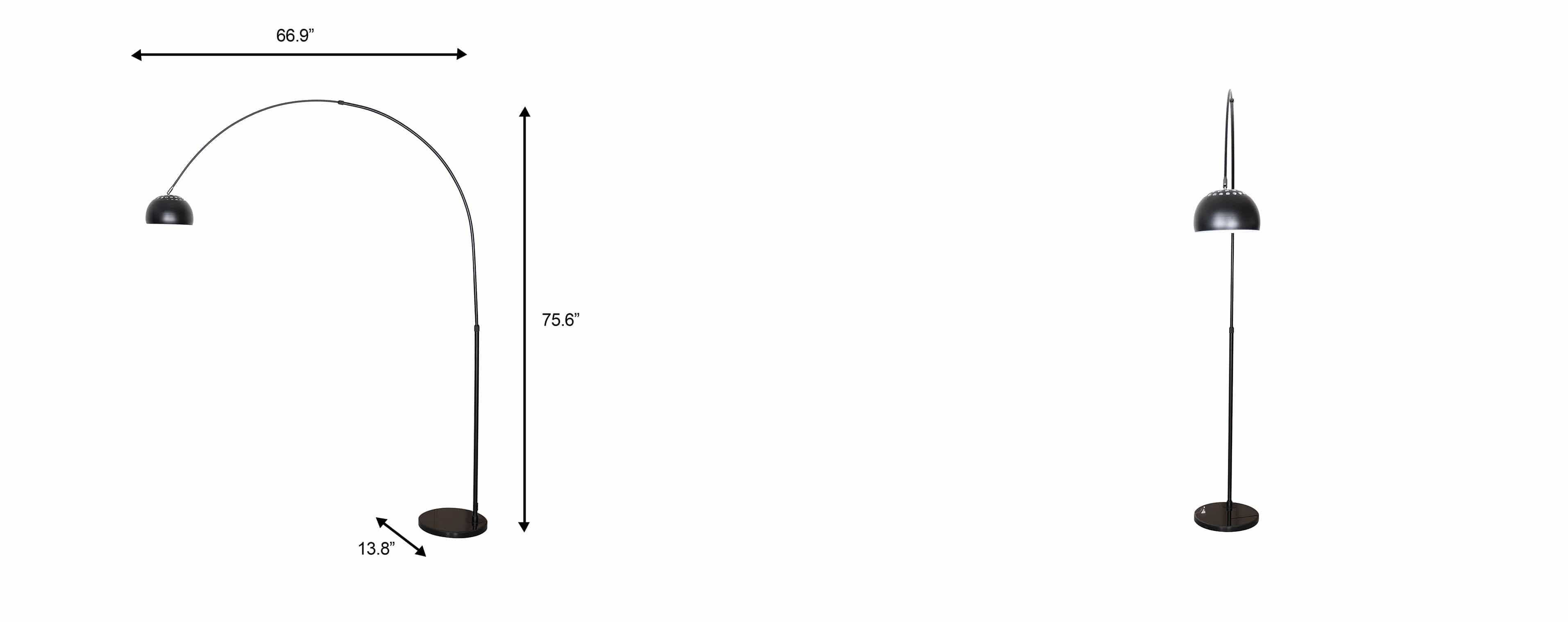 Elevate your space with the sleek and modern Arco Floor Lamp! Standing at 76 inches tall, this lamp features a unique arched design and a sturdy black round marble base for stability. The metal dome lamp shade adds a touch of industrial flair. Bring style and function to any room!