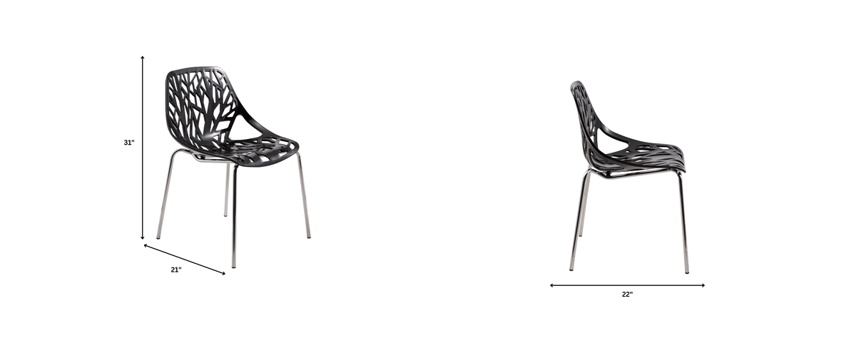 Asbury Polypropylene Dining Side Chair with Forest Cut-Out Design in Chrome