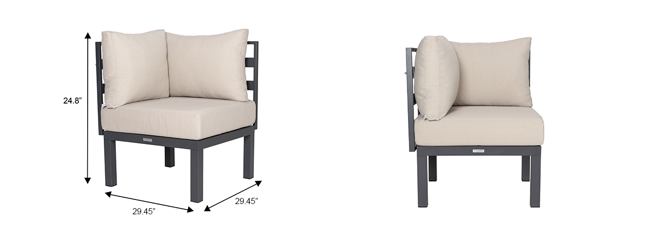 - The Patio set includes 2 corner chairs and 4 armless chairs, providing ample seating for family and friends. Its modular design allows for versatile arrangements, adapting to your space and preferences.