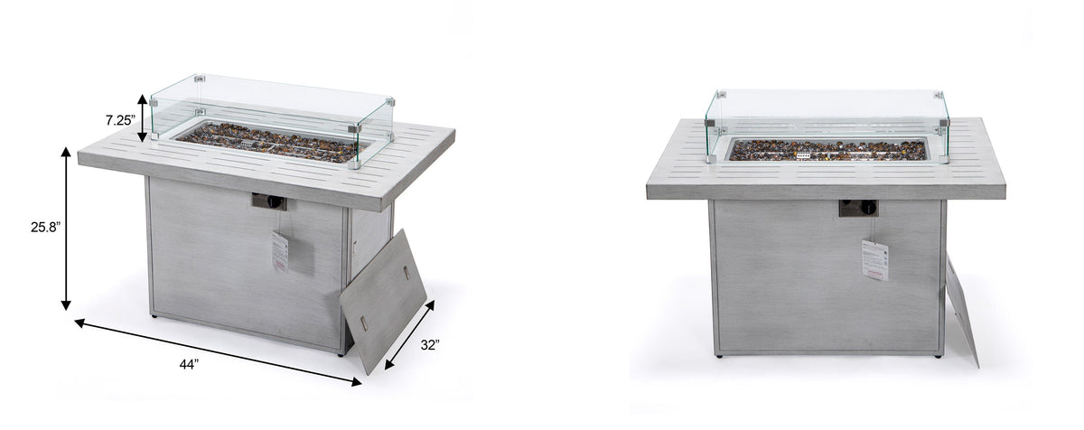 - Powder-coated aluminum frame with a stainless steel fire bowl ensures durability and weather resistance.