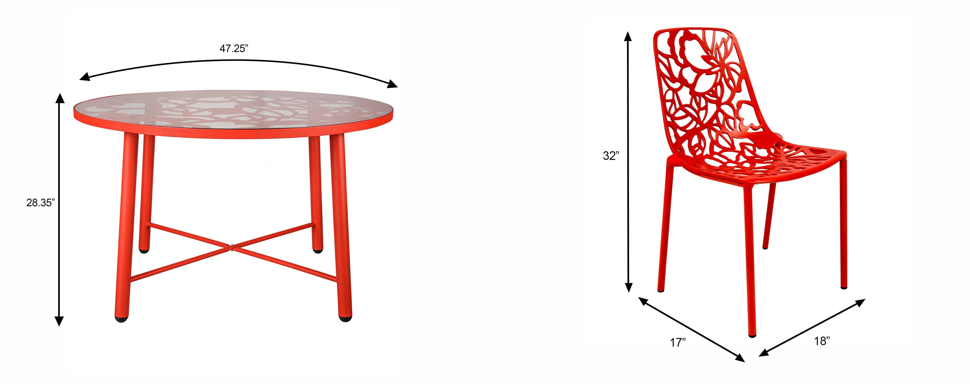 Elevate your outdoor dining experience with the Devon Modern 7-Piece Aluminum Dining Set. The sleek table, with a tempered glass top, and 6 stackable chairs featuring a beautiful flower design, provide both functionality and style. Enjoy al fresco meals with family and friends in luxury and comfort.