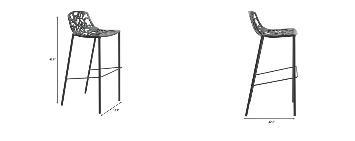 Introducing the Devon Aluminum Bar Stool, a stylish and comfortable addition to any indoor or outdoor space. Featuring a unique cut-out design for added sophistication and improved airflow, this stool is perfect for long periods of sitting. With a rust-resistant powder-coated aluminum frame, it is built to withstand outdoor use. Choose from a variety of colors to match your decor. Upgrade your seating with the Devon Bar Stool.