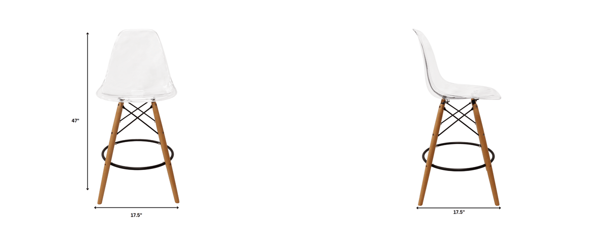 Elevate your kitchen and dining room with the Dover Mid-Century Modern Plastic Barstool. Made with sturdy Beech Wood legs and a comfortable footrest, this barstool combines style and function. Its sleek and modern design will add a touch of sophistication to any room. Experience comfort and elegance with the Dover Barstool.