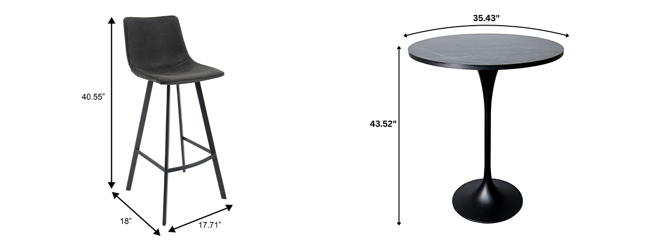 - Compact set seats four, ideal for kitchens, dining rooms, or bars.
