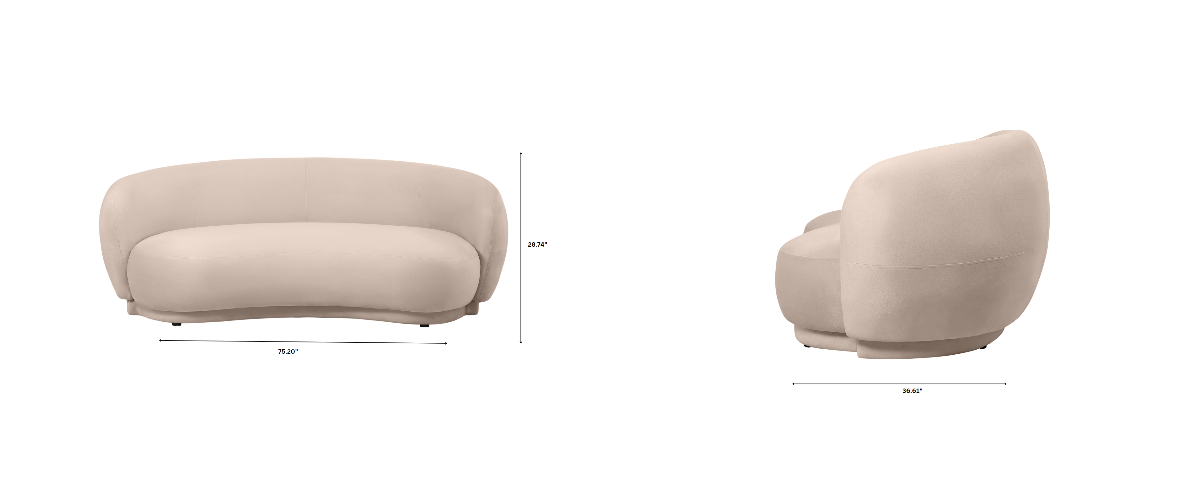 - The sofa has a modern look with its curved backrest that smoothly transitions into the rounded armrests, creating a smooth, flowing shape. The base is slightly lifted, giving the sofa a floating appearance. Its clean lines and simple style make it a stylish choice for any room.