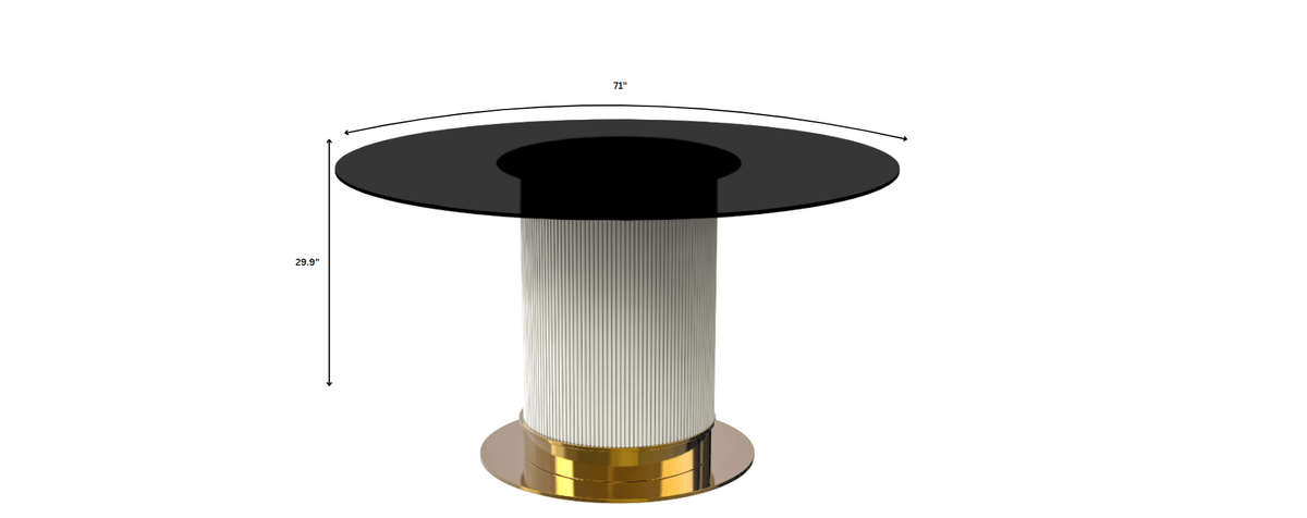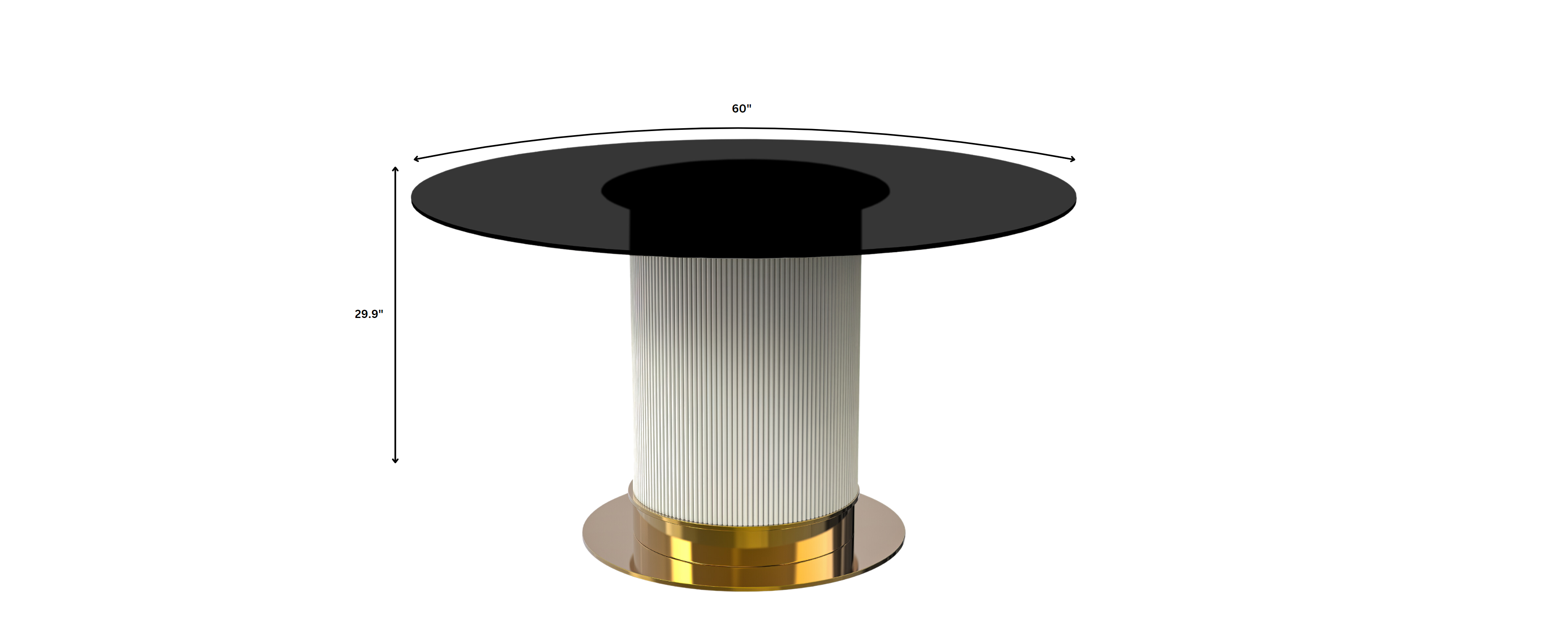 Elevate your dining experience with the Jexis Modern Round Dining Table. Its sleek, mid century modern design features a spacious round top made of sintered stone and glass, supported by a sturdy stainless steel pedestal base in white and gold. Easy to assemble and maintain, this table adds a touch of style and durability to any home.