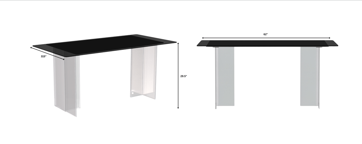 Kova Rectangular Dining Table with Sintered Stone/Glass Top and Acrylic Base Legs