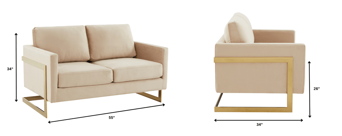 Lincoln Velvet/Leather Upholstered Loveseat with Gold/Black/Silver Steel Frame & Removable Cushions