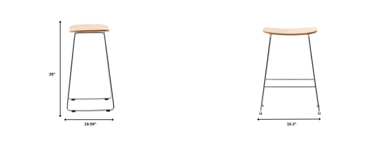 Elevate your kitchen or bar area with the stylish and contemporary Melrose Modern Wood Counter Stool. Featuring a sleek chrome frame and a wooden seat, this stool not only adds a touch of modern elegance, but also provides comfortable seating. Upgrade your space and impress guests with this chic piece!