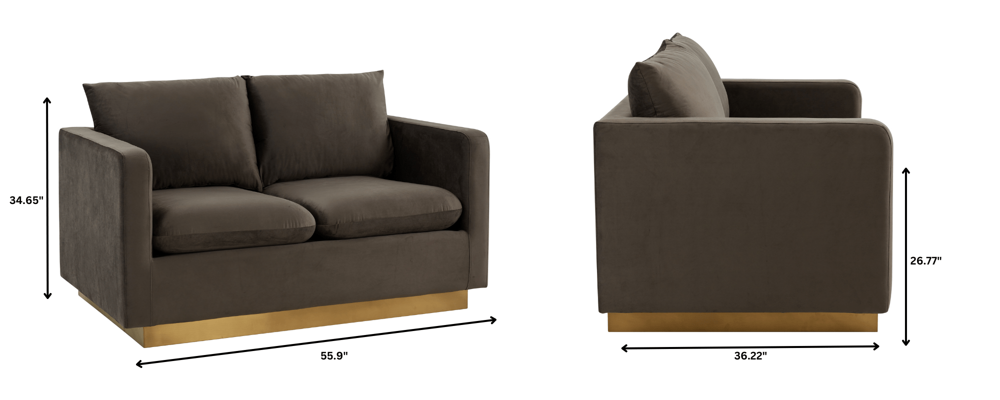 Nervo Upholstered Velvet/Leather Loveseat with Gold Stainless Steel Base