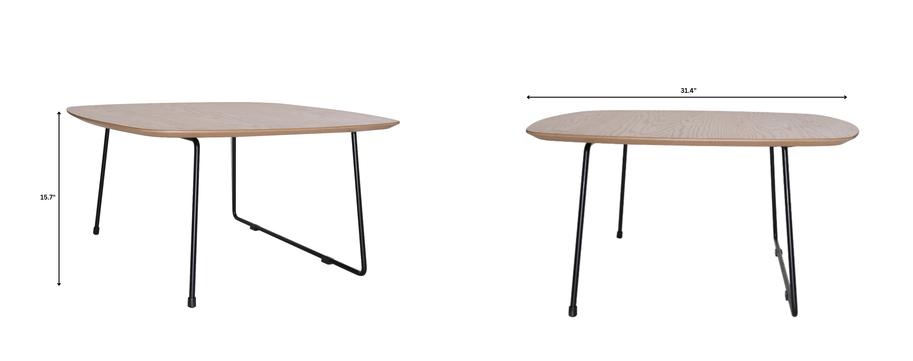 Pemborke Square Coffee Table with Oak Wood Table Top and Iron Frame