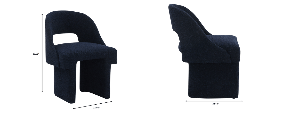- Upholstered in soft bouclé fabric, it combines modern aesthetics with a cozy, textured, and inviting feel.
