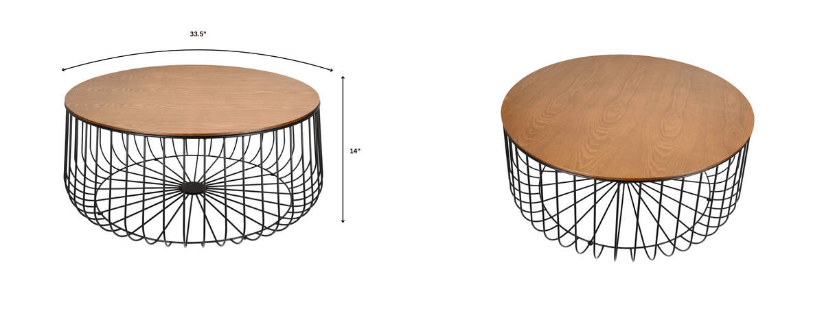 Introducing the Runswick Mid Century Modern Round Coffee Table, the perfect addition to your living room or bedroom. Its sleek and contemporary design features a high-quality manufactured wood top with a natural finish, providing both style and functionality. The durable steel base with wire frame structure ensures stability for all your essentials. Upgrade your space with this stylish and long-lasting accent table.