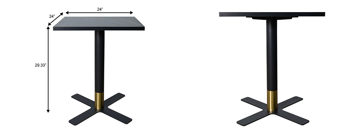 Vail Collection Dining Table Black/Gold X Base With 24" Square MDF Top