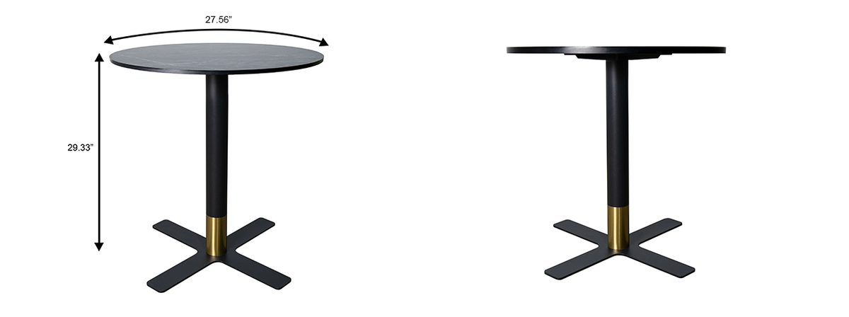 Vail Collection Dining Table Black/Gold X Base With 27"/36" Round Black MDF Top