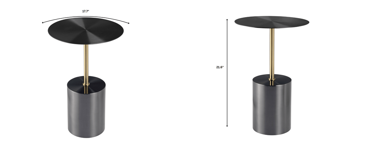 A blend of elegance and functionality for any living space. With a round black matte top and a gold metal pole, this table is perfect for drinks, books, or decor. Made from high-quality stainless steel, it’s durable and resistant to corrosion. Ideal for small spaces, it combines practicality with timeless elegance.