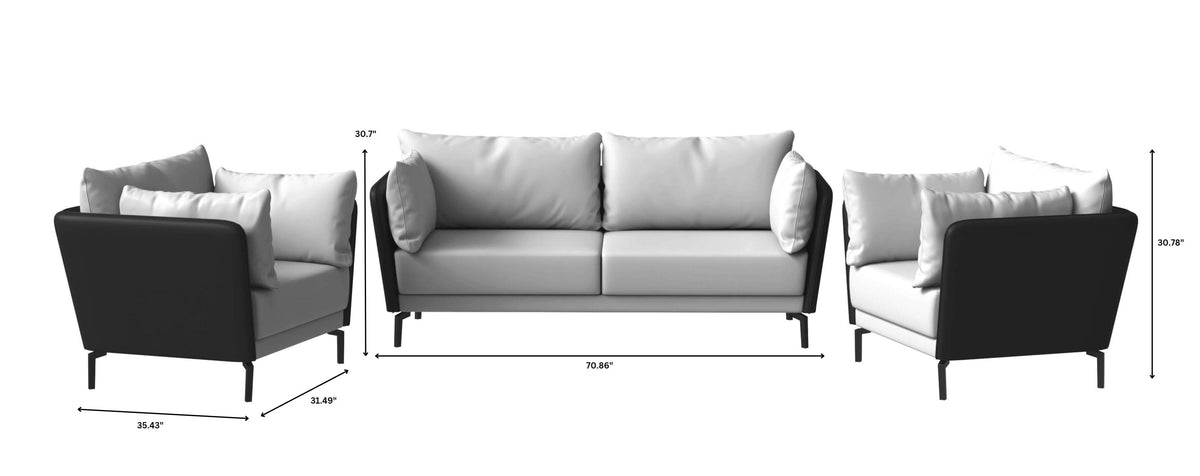 Introduce modern elegance to your home with our Luxify Series 3-piece Sofa Set. Upholstered with eco-friendly vegan leather and featuring a solid wood frame and metal legs, this contemporary set offers both style and durability. With easy maintenance and foam filling for comfort, it's versatile and reliable for any space.