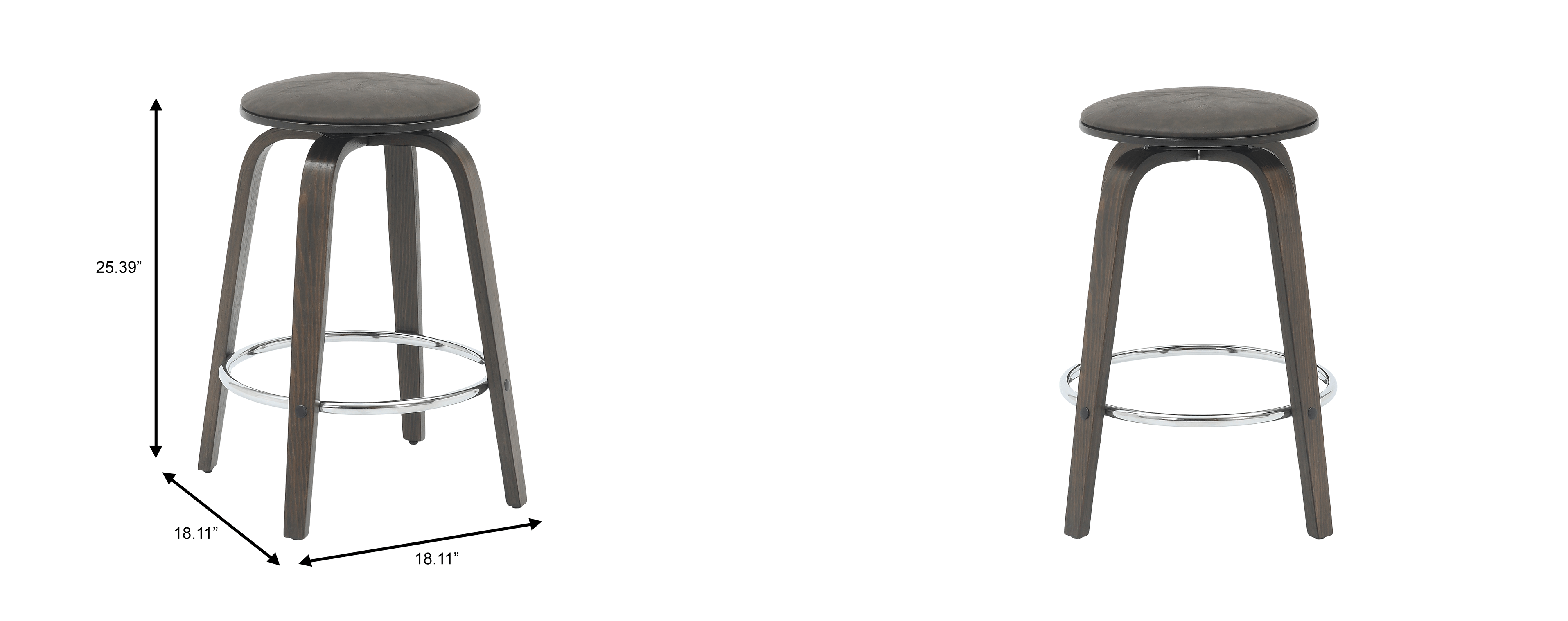 Pelya Modern Swivel Counter Stool Upholstered in Leather With Chrome Iron Footrest