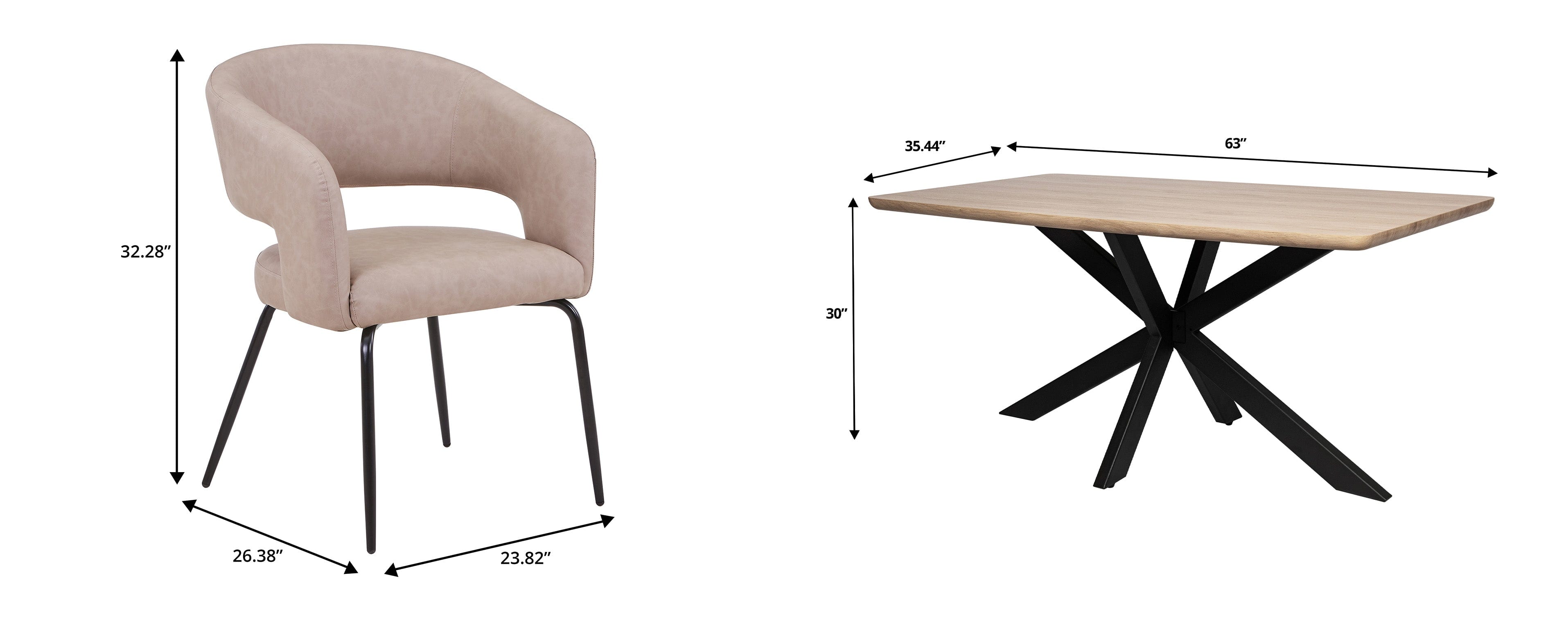 Ravenna 5-Piece Dining Set with Rectangular Dining Table in Maple and 6 Dining Chairs