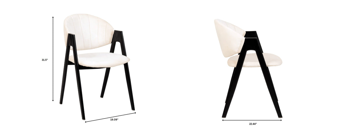 - Modern dining chair features a sleek silhouette with a curved backrest that supports posture and adds visual appeal.