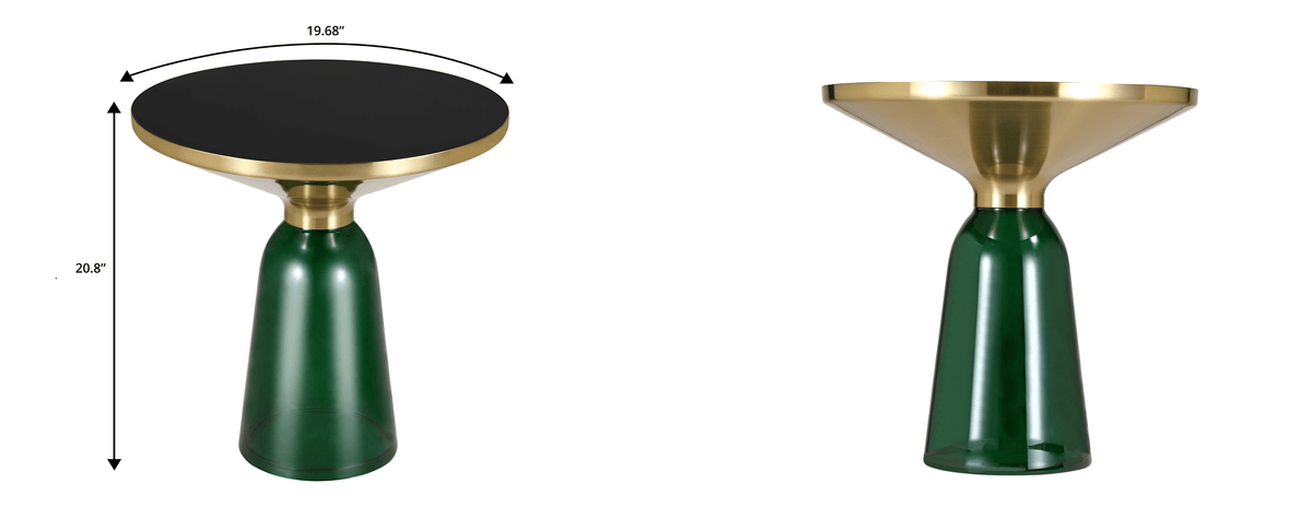 - Black and Gold finish creates a sleek matte look, complementing the tinted glass base and elegant design.