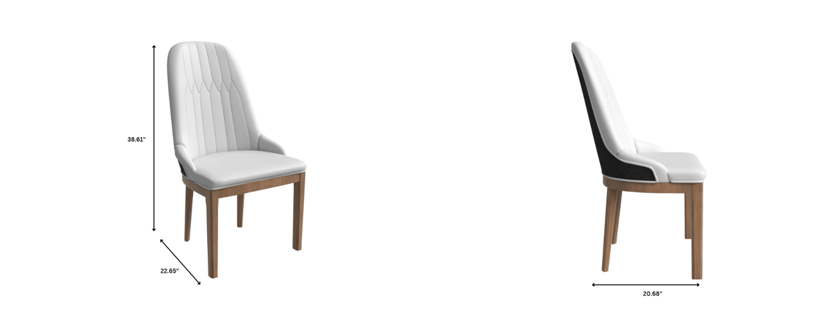 - Modern dining chair with sleek leather upholstery and solid wood legs combines minimalist style with everyday comfort.