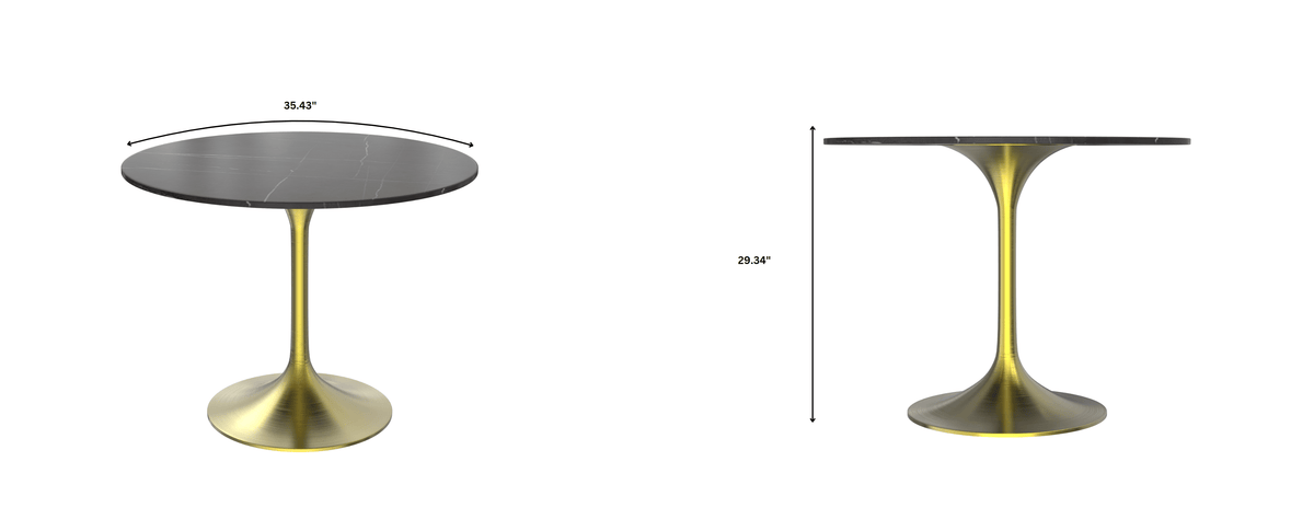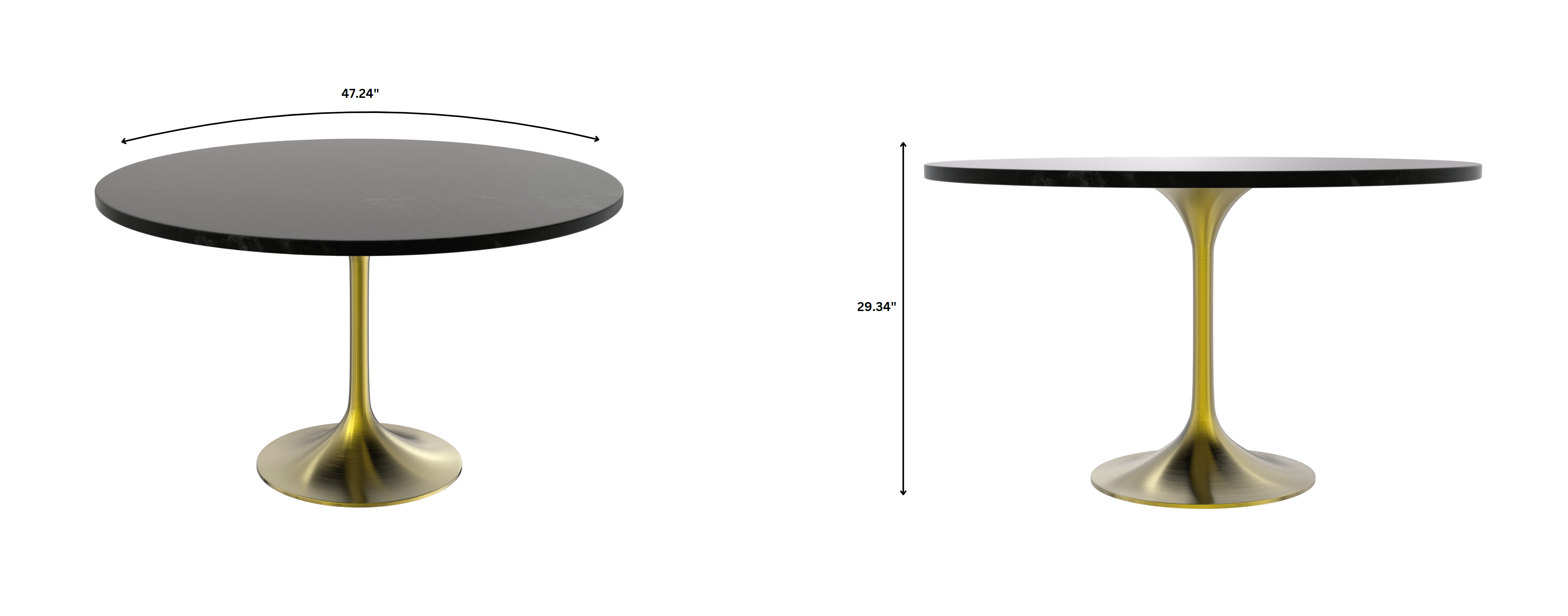Verve Round Dining Table with MDF/Sintered Stone/Resin Tabletop in Gold Stainless Steel Pedestal Base
