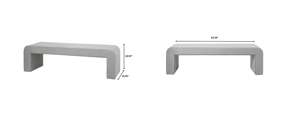 Vint 63" Wide Upholstered Bench in Boucle/Velvet with Curved Waterfall Design