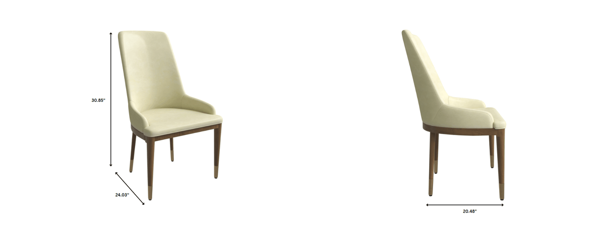 Viva Dining Side Chair Upholstered in Leather with Brown Rubberwood Legs
